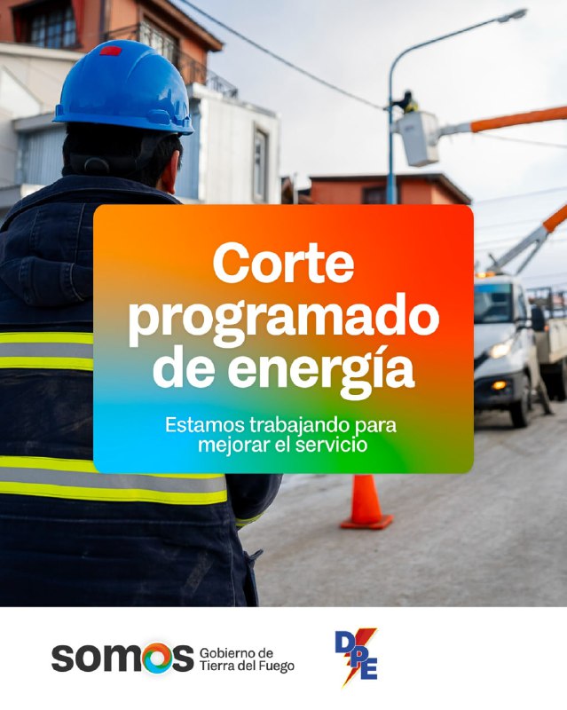 La Dirección Provincial de Energía informa a la población de Tolhuin que debido a tareas de mantenimiento programadas en la usina se realizará un corte de energía eléctrica el martes 28 de octubre desde las 3:00 hasta las 8 horas.