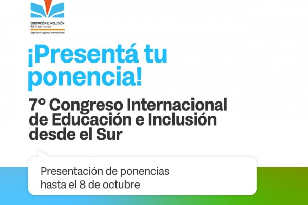 El Ministerio de Educación de la provincia extendió hasta el martes 8 de octubre el periodo de presentación de ponencias para el 7° Congreso Internacional de Educación e Inclusión desde el Sur 2024. Las ponencias pueden abarcar proyectos institucionales, c... Leer [+]