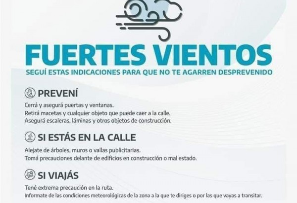 ESTE MIÉRCOLES REGIRÁ UNA ALERTA AMARILLA POR FUERTES VIENTOS