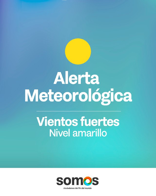 La Secretaría de Protección Civil comunica que, según el Servicio Meteorológico Nacional, se mantiene vigente en la provincia la ALERTA AMARILLA por temporal de viento este día viernes 25 de octubre, con ráfagas que puede superar los 100 km/h.